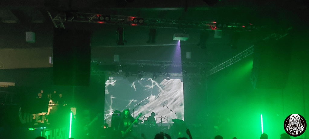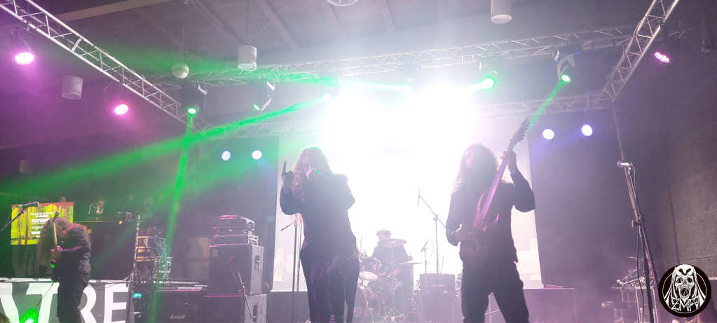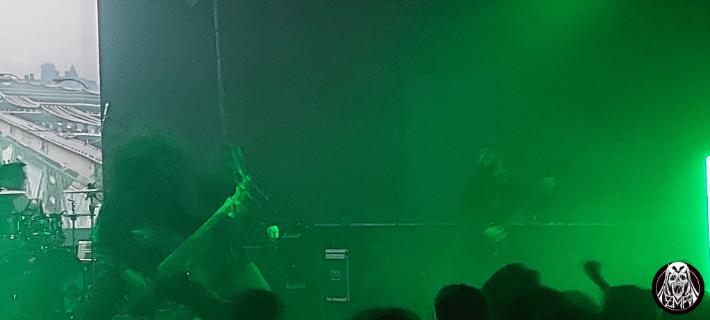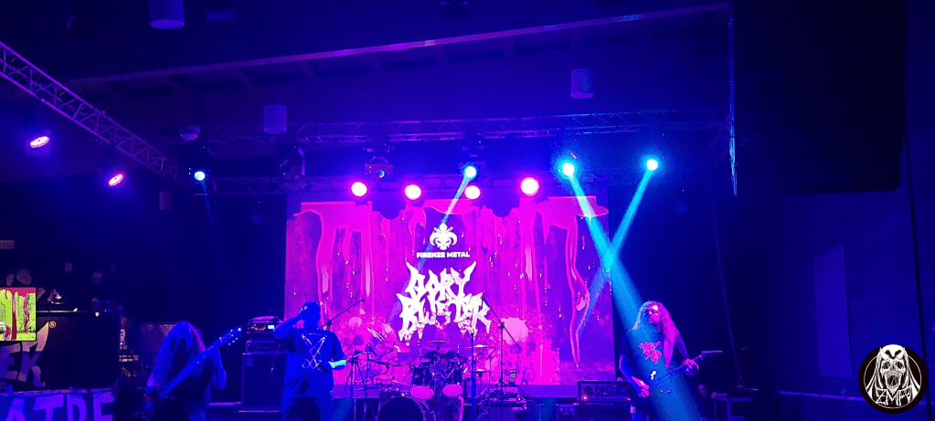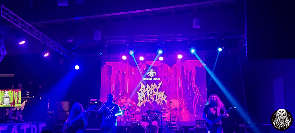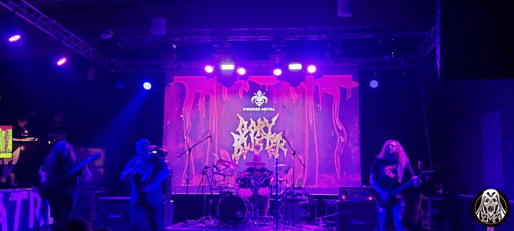 Il divertimento e l’euforia, finora, non sono di certo mancati, ma per rincarare la dose serve un’altra scossa: quella dei Gory Blister. Il gruppo, attivo dal 1991, è ormai tra i veterani del metal nostrano, vantando un palmarès di 7 album in studio, l’ultimo dei quali, Reborn from Hatred, è uscito nel 2023. Con tutta l’esperienza che hanno alle spalle, salgono sul palco fieri, carichi e pronti a far scatenare tutti in un moshpit continuo, riuscendoci alla grande. Paolo Quaglia, il cantante, è in forma smagliante, così come Gianluca D’Andria e Raff Sangiorgio che maneggiano i propri strumenti con maestria. Quello dei Gory Blister è il classico show che ci si aspetterebbe da una band death metal: diretto, senza fronzoli e distruttivo, racchiuso in una esibizione eccellente, tra le migliori della serata. Il pubblico, infatti, li acclama a gran voce, ma il tempo scorre veloce e inesorabile fino alla fine dello show, chiuso con applausi meritatissimi.
