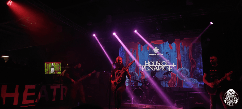 Abbiamo appena superato la metà dell’evento, ma non sono permessi cali di energie e di tensione, perché il trittico finale che ci aspetta è uno di quelli micidiali. E il nome da cui si parte è tutto un programma. Gli Hour of Penance hanno sempre portato in alto il vessillo del death metal made in Italy con un sound tecnico, brutale e demolitore. Tendenza che, a Roma, è condivisa da tanti altri gruppi importanti come Hideous Divinity e Devangelic ma, in questo caso, la differenza la fa il tempo. Gli Hour of Penance sono in giro da un quarto di secolo, e questo li rende autorevoli in tutto ciò che fanno. Poco importa se della formazione originale non sia rimasto più nessuno, perché chi ne fa parte adesso non è da meno. Non a caso, è lo spettacolo a descriverli: Giacomo Torti, già membro dei Bloodtruth, crea alle pelli un muro sonoro impenetrabile che si propaga in tutto il locale, retto dal basso di Marco Mastrobuono e dalle rasoiate di Giulio Moschini e Paolo Pieri, ottimo anche nel growl. Nel mentre, sotto al palco si scatena l’inferno: non c’è un attimo di respiro, il pogo sembra un tornado e, come se non bastasse, qualcuno inizia anche a lanciarsi in temerari crowdsurfing. I brani eseguiti, presi da quasi tutto il repertorio, scorrono come macigni lasciandoci sfiniti, ma soddisfatti. Lo spettacolo non poteva andare meglio.