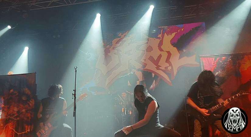 Dopo un solo quarto d’ora, tocca ai torinesi Ural salire sul palco. I thrashers, attivi dal 2010, si stanno facendo notare nella scena metal nostrana grazie ai loro dischi sempre più convincenti. Finora, sono 6 i loro lavori ufficiali: 3 album, 2 EP e un demo, pronti ad essere suonati davanti ad una folla ormai scaldata e pronta per sorbirsi un’altra ondata di pura aggressività fatta a musica. Gli Ural, infatti, salgono sul palco con una carica travolgente espressa nella loro esibizione. In particolare, sono le conclusive Virtual Sleep e Fake Reality a colpire gli spettatori, uscendo di scena con forte approvazione.