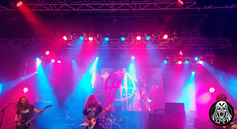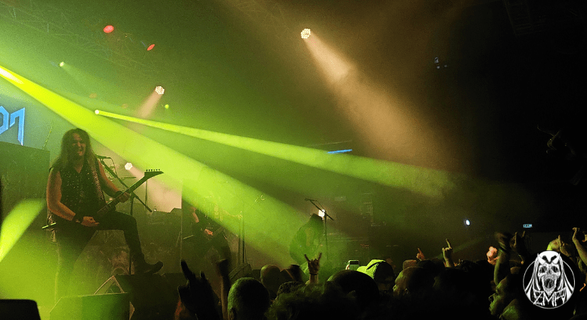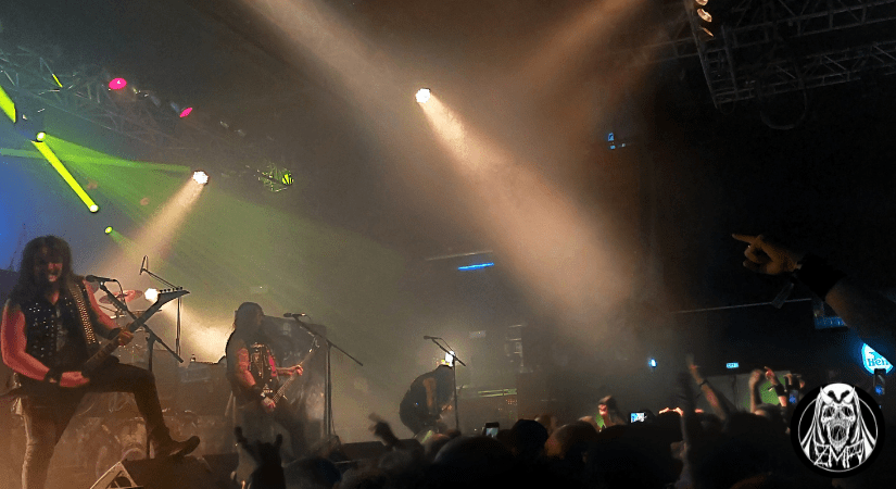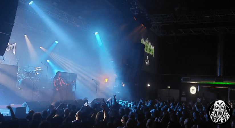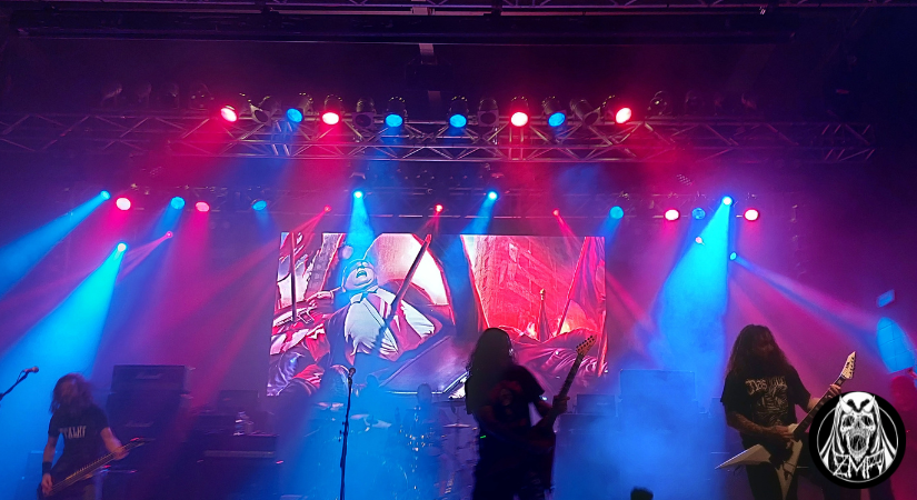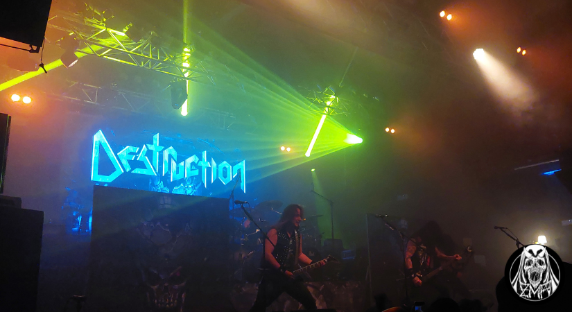Ora sì che il clima al Live Club è infuocato: tutti sono contenti, un po’ provati dagli show precedenti, ma elettrizzati per affrontare l’ultima fase di questa giornata. E la prossima band ad esibirsi ha proprio il nome che descrive ciò che sta per accadere. Sui Destruction non c’è molto da dire, perché tutti i presenti sanno chi siano e a cosa andranno incontro per i prossimi 75 minuti. In Italia sono venuti già tante volte e, per loro, questa potrebbe essere una data come tante altre, ma essendo co-headliner in un evento del genere, sanno che dovranno dare il massimo. E per una band esperta come loro questa è la prassi. Per scatenare sin da subito i fan sotto palco, iniziano direttamente con tre grandi classici: Curse the Gods, Invincible Force e Nailed to the Cross, provocando un moshpit infernale che non mancherà per tutta la durata del loro set. La devastazione continua con Mad Butcher, brano con cui i chitarristi Damir Eskić e Martin Furia fanno tremare tutto il locale con i riff potenti assieme a Schmier, artefice di una prestazione vocale distruttiva. Ottima, ovviamente, anche la prova del drummer Randy Black, autore di martellate micidiali che fanno viaggiare gli spettatori con headbanging e pogo continui. La tensione rimane sempre alta, non c’è un minimo di tregua, e tutto scorre all’impazzata in una setlist che si conclude con i due inni della band: Thrash till Death e Bestial Invasion, tra gli applausi di una folla eccitata all’ennesima potenza. Lo show offerto dai Destruction non poteva essere diverso da come ci si poteva immaginare: impetuoso, rabbioso e, in linea con il loro nome, distruttivo.