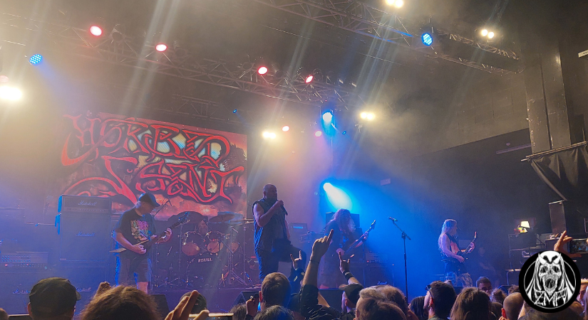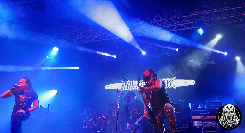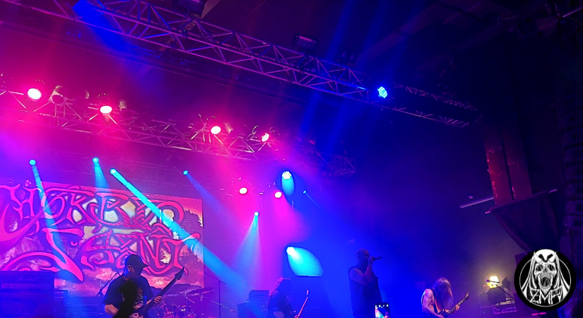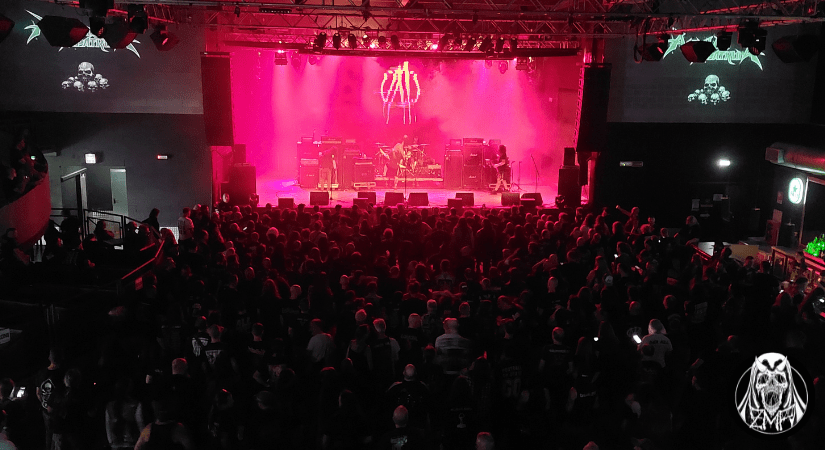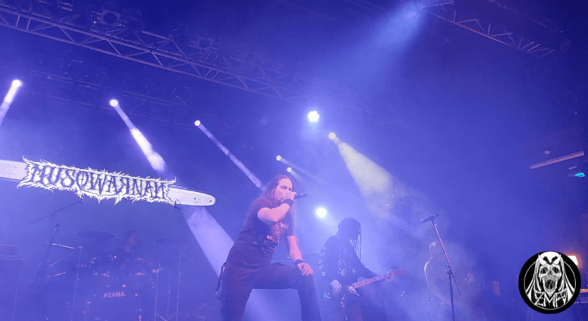 I cancelli del Live Club si aprono già alle 13. La fila è scorrevole, il locale è già pronto con gli stand, l’area merch e l’area del meet & greet che, per tutta la giornata, sarà molto trafficata negli orari prestabiliti. Alle 14 in punto iniziano gli Husqwarnah, band dal classico death metal feroce e battagliero. La setlist proposta dai monzesi spazia in canzoni tratte dai due album Front: Toward Enemy (2021) e Purification Through Sacrifice (2024), alternandole perfettamente in una performance esplosiva. L’atmosfera, infatti, diventa subito rovente e, per quella mezz’ora di esibizione, gli Husqwarnah si prendono costantemente gli applausi di un pubblico ancora poco numeroso, ma carichissimo, segno che la giornata è partita nel migliore dei modi.