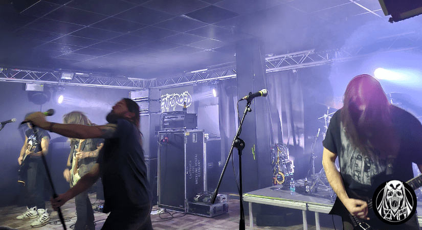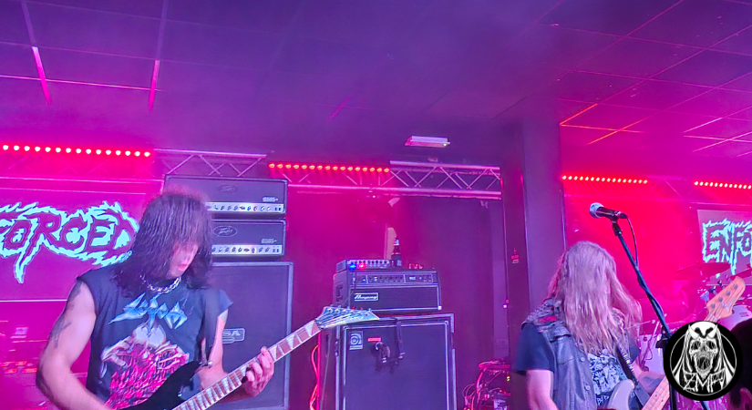 Le porte del Legend si aprono alle 19. L’affluenza è ancora bassa, il locale è mezzo vuoto, ma già si intravede il primo movimento sul palco, pronto ad accogliere gli Enforced. La band di Richmond è una delle più in voga tra le moderne reclute del thrash metal, capaci di replicare quello stile messo a punto dai Power Trip ma con una dose di cattiveria in più. Caratteristiche che descrivono il genere in questione: diretto, senza fronzoli, senza giri di parole, proprio come lo sono questi ragazzi nell’attitudine. Una volta entrati in scena, infatti, non perdono un secondo di tempo e partono in quinta con Betting on the End, tratta dal loro ultimo EP A Leap Into the Dark, per iniziare a picchiare duro. La setlist si concentra non solo sulla loro ultima release, ma anche sui full-length War Remains e Kill Grid, con bordate che smuovono subito gli animi degli spettatori. Il frontman Knox Colby chiama i circle pit e qualcuno già si mobilita, pur non essendoci ancora un numero elevato di persone, ma certo è che nessuno rimane impassibile alla loro esibizione. Gli applausi che ricevono a fine show sono calorosi e sinceri, giusto riconoscimento per questi ragazzi, autori di un’ottima performance.