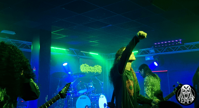 Sono all’incirca le 21, il Legend si è ormai riempito e, dopo un’altra lunga pausa, arriviamo all’ultimo atto. I Gatecreeper sono già stati in Italia ad agosto 2023 come ospiti nella line-up del Frantic, ma con delle differenze che non riguardano solo il clima. In quell’occasione, infatti, non avevano ancora realizzato il terzo album Dark Superstition, che oggi, invece, presenteranno nella sua interezza. Quando una band arriva al fatidico terzo full-length, di solito deve confermarsi nel suo stile, nel suo status e nella sua bravura. Compito difficile, certo, ma i deathsters dell’Arizona l’hanno portato a termine. Nei precedenti Sonoran Depravation e Deserted, l’influenza del death metal svedese si riconosce nell’immediato, ma con quest’ultimo si sono spostati su sponde più melodiche e orecchiabili. Ciò non significa, però, che il sound ne abbia risentito sulla pesantezza che, come in studio, ci si aspetta anche in sede live. E la prova del nove è arrivata. Chase Mason sale sul palco con i suoi baffi folti e gli occhiali da sole partendo, assieme ai suoi compagni, con Oblivion, tratto dall’ultimo album, per poi passare ai vecchi capitoli tramite bordate come Ruthless e Craving Flesh, nei quali si erge la performance del drummer. Nel complesso, i ragazzi viaggiano linearmente, divertendosi e picchiando in maniera costante sul pubblico, che risponde pronto con circle pits e acclamazioni fino all’ultima song in scaletta quando, prima di passare all’encore, Mason promette altri due brani se vede tutti scatenarsi fino allo stremo delle forze. Detto, fatto. Gli è bastato vedere il mosh sfrenato sotto i suoi occhi per dire: “Complimenti, vi meritate altre due canzoni!”, chiudendo il set con Flamethrower e Boiled Over. La serata, quindi, si chiude alle 22:30 dopo aver visto protagoniste tre band che hanno dimostrato di essere le next big thing dell’odierno panorama estremo.