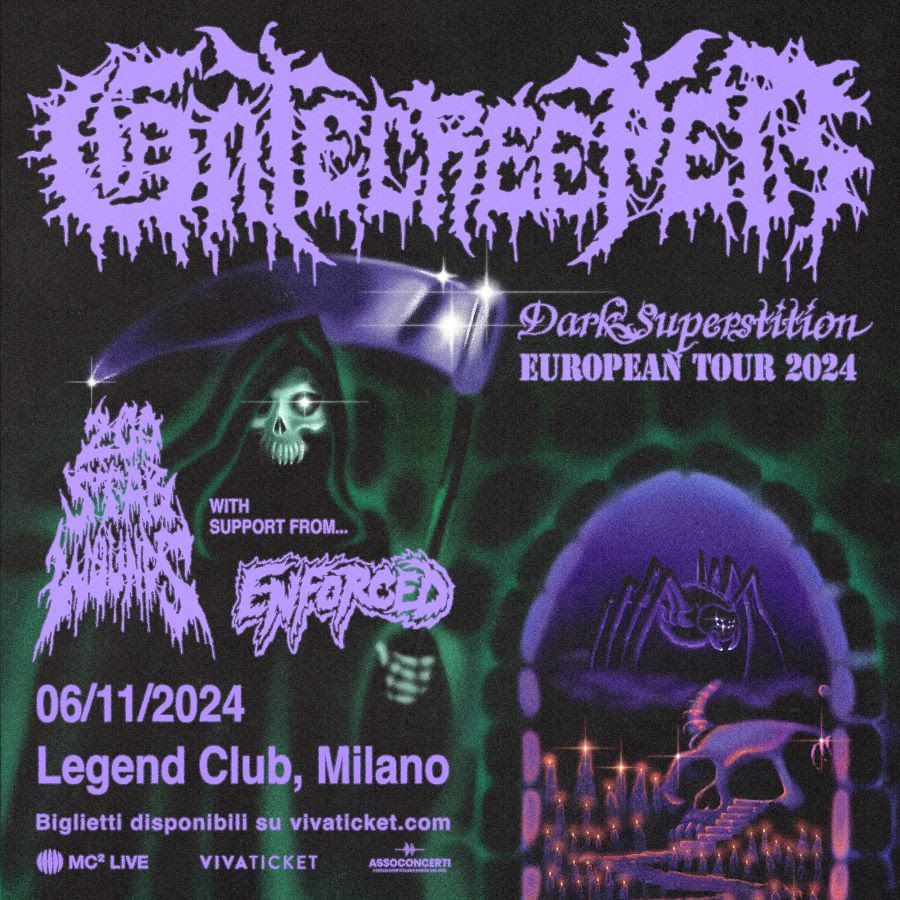 Dopo il concerto degli Uada del 3 novembre, ecco che arrivano in serie: gli Ulcerate con i Fange martedì 5, il Faces of Death con Veil of Maya, Signs Of The Swarm, Varials e To The Grave giovedì 7 e, il giorno prima, un vero tridente di sfondamento. I Gatecreeper, freschi dell’ultimo album Dark Superstition, arrivano a Milano per l’unica tappa italiana del tour europeo assieme ad altri due nomi di rilievo della nuova scena estrema mondiale: i 200 Stab Wounds e gli Enforced.