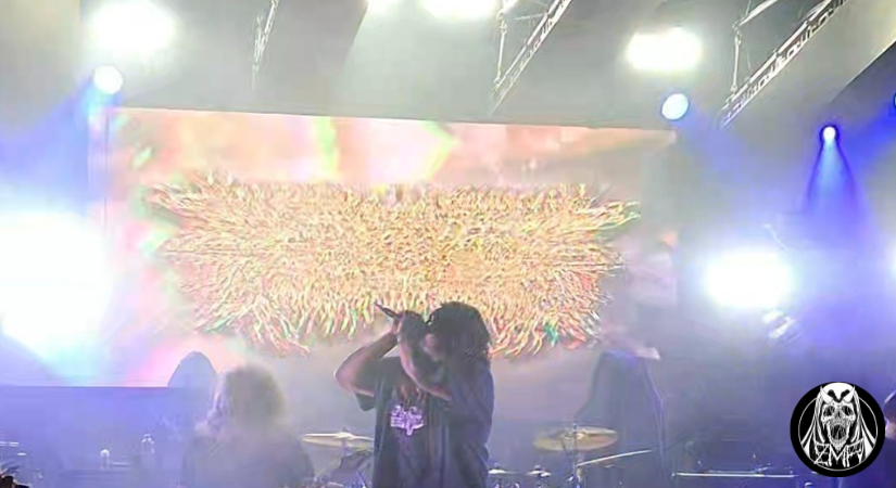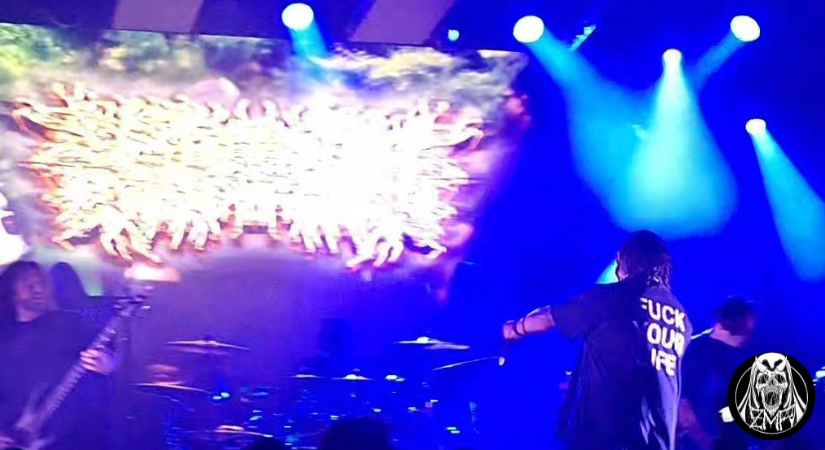 Dopo 30 minuti di pausa, ecco salire sul palco un’altra formazione che, di leggero, non ha praticamente nulla. I Peeling Flesh stanno conquistando la scena estrema con il loro mix tra slam brutal death e sonorità hip hop. Una combo sicuramente inusuale, resa ulteriormente tale dall’uso di campionamenti esterni al metal estremo, per un risultato che anche in sede live può essere sorprendente. E lo è: Damonteal Harris guida bene lo show con il suo growling dirompente, ma anche gli altri componenti non scherzano. Il batterista Joe Pelleter è in stato di grazia dietro le pelli, così come Mychal Soto e Jason Parrish alle chitarre, regalando al pubblico un’ottima performance. La migliore vista finora.