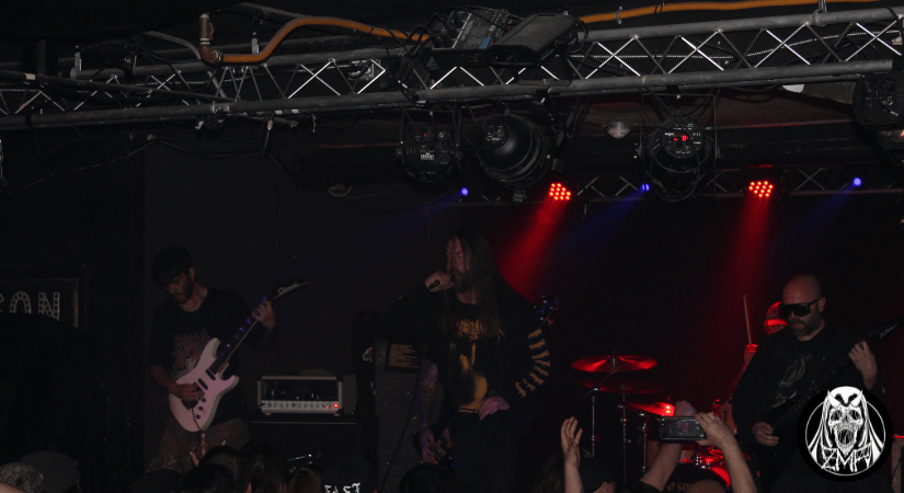 La partenza è affidata alla giovane band proveniente dalla vicina Hamilton che, con il suo primo EP Necrorealism, propone un death metal feroce, diretto e senza fronzoli. Lo show, seppur breve, prosegue tra una bordata e l’altra (di cui Insidious è la più memorabile) infiammando per bene un Garrison non ancora pieno, ma già molto carico e rovente. La mezz’ora abbondante non ha deluso il pubblico che, con una forte dose di applausi, si congratula con i Mortuary Slab mentre escono di scena contenti della performance.