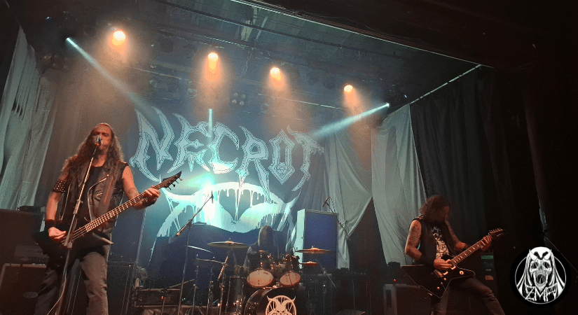 Dopo una buona mezz’ora di pausa, ecco salire sul palco i californiani Necrot, band che di strada ne ha percorsa parecchia da quando è stata fondata. Sono tre gli album realizzati sin ora, uno meglio dell’altro, che hanno permesso ai ragazzi di guadagnarsi un buonissimo successo nell’audience estrema, motivo per cui non sono venuti a Toronto a svolgere il ruolo di comprimari nella line-up. E ciò è presto detto: Luca Indrio, il frontman italiano della band, sale sul palco in forma smagliante, viaggiando spedito assieme a Chad Gailey e Sonny Reinhardt nelle bordate che presentano al pubblico, sempre più carico e numeroso. La setlist non è molto ampia, ma riesce a spaziare tra tutti e tre gli album, in maggioranza Mortal e Lifeless Birth, per uno show che finisce con grossi applausi.