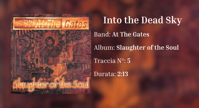 Into the Dead Sky è un altro intermezzo dalla funzione e dalla emotività simile. Con Slaughter of the Soul, gli At The Gates realizzarono il manifesto del melodic death metal, in cui i brani dovevano essere potenti, travolgenti, feroci. Di fatti, tracce come Cold, Suicide Nation e World of Lies scorrono forti ed energiche, ma tra di esse si distingue proprio questo interludio strumentale dove la tensione si trasforma in tristezza. Le chitarre acustiche introducono il brano con arpeggi morbidi, su cui si innestano chitarre elettriche dal timbro pulito e riverberato, intrecciandosi in modo semplice ed efficace e creando un’atmosfera contemplativa. Sullo sfondo, il basso lavora con note lunghe e profonde, mentre la batteria contenuta accompagna con tocchi leggeri, limitandosi a scandire i passaggi con una presenza discreta ma espressiva. Verso la fine, l’atmosfera cambia, diventa leggermente più tesa, ma non si appesantisce, chiudendo il brano con un alone di mistero, ma mantenendosi sempre introspettivo. Non si tratta dell’unico interludio strumentale dell’album, ma la conclusiva The Flames of the End è completamente diversa da Into the Dead Sky che, tra le due, è senza dubbio la più epica.